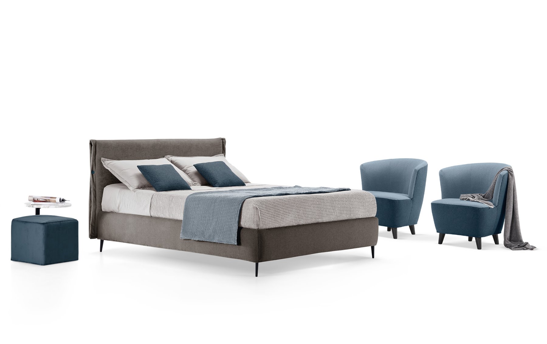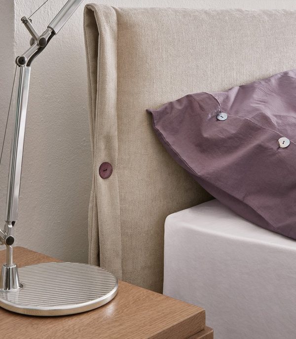 Dettagli sartoriali testimoniano l’alta artigianalità di un letto unico, caratterizzato da uno stile senza tempo. Le forme definite della testata definiscono un design elegante, ideale per ambienti raffinati e ricercati.